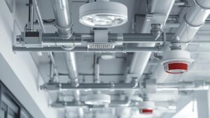 مثال:عند اكتشاف الحريق، يتم إرسال تنبيه فوري لغرفة المراقبة عبر نظام الـ CCTV، مع تشغيل نظام الإطفاء التلقائي وتنبيه الحراس عبر النظام الصوتي الداخلي.